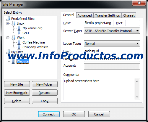 Lo que sigue es configurar un nuevo sitio en el programa y luego darle clic a conectar.
